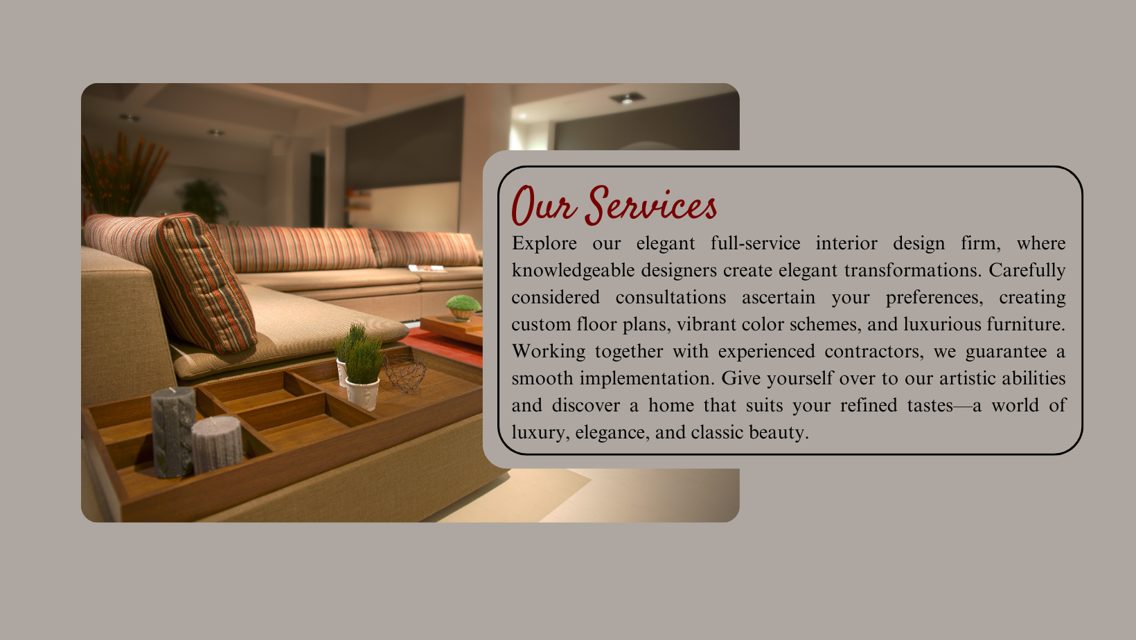 The pinnacle of luxury and refinement awaits in our top-tier interior home designing package. Unrivaled opulence pervades every facet, manifested through premium materials and exquisite craftsmanship. With meticulous attention to detail, each interior element exudes grandeur and sophistication, elevating your dwelling to the zenith of elegance. Bespoke furnishings, meticulously tailored to your discerning tastes, envelop your space in an aura of exclusivity and splendor. Personalized consultations, guided by design virtuosos, create an immersive sensory experience, shaping an enduring masterpiece that transcends the ordinary and encapsulates the epitome of fine living. Surrender to this superlative offering, and your abode will transcend into an ethereal sanctuary, where artistry and luxury converge in symphonic harmony.